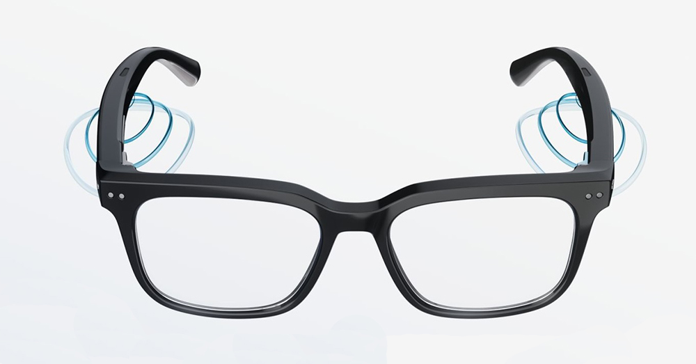 Nuance Audio uses air conduction technology. Built-in microphones capture sound, process it with beamforming algorithms to enhance speech clarity and suppress noise, then play it through open-ear speakers directly toward the ear canal. There is minimal sound delay, and the open design allows natural environmental sounds to mix in, preserving situational awareness.